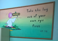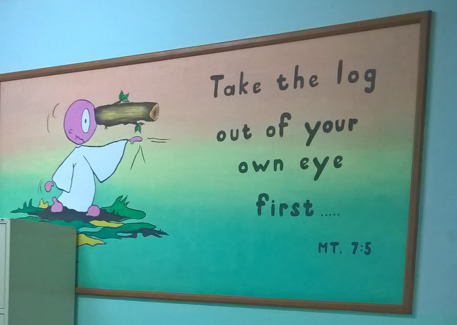 - Nu este cine știe ce ”pavoazare” (pereții sunt mult mai ”sobri” decât în alte școli pe care le-am vizitat. Multe dintre imagini sunt realizate de profesorul de arte. Sunt și citate biblice, dar pe înțelesul copiilor.