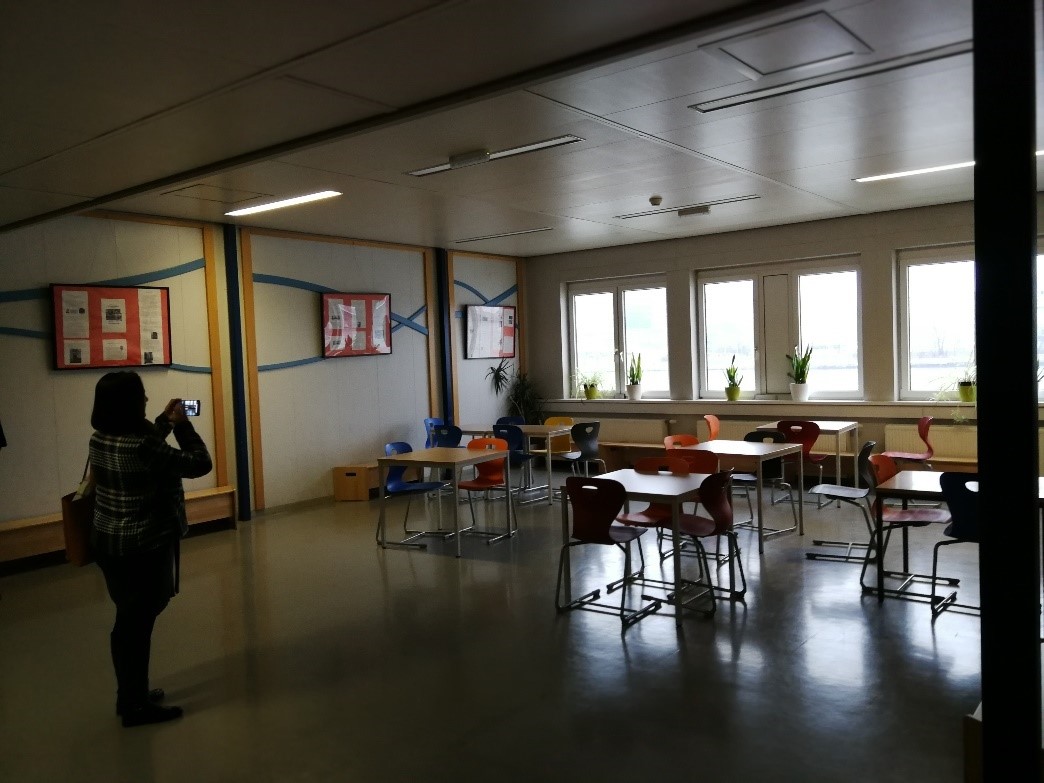- Sala de sport, de pe ponton, este mai mare decât am văzut în majoritatea școlilor (de la noi sau de aiurea). Se pune mult accent pe mișcare, inclusiv în aer liber – existând multe activități în afara școlii (inclusiv posibilitatea ca elevii să iasă din școală pentru a se recrea sau pentru activități extracurriculare).